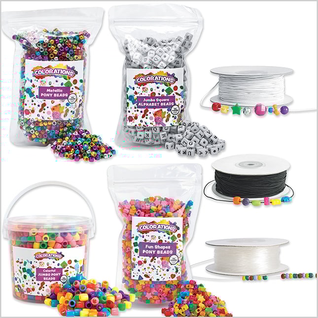 If you love classic pony beads, you'll love these jumbo sized pony beads! Easy for small hands to lace and string! Ideal for holiday and summer crafting.