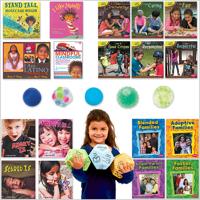 Sensory Gel Ballz, My Family Paperback Books, Daily 5-Minute Practices to Support Social-Emotional Learning, Building Self-Confidence Books, "I Like Myself!" - Hardcover Book, Building Self-Confidence Book, Know Your Emotions Books - 4 Titles, I Don't Bully Books - 6 Titles, Emotional Learning Emotion Dice