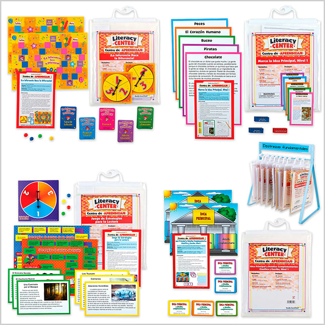 This Standards-based content, ready-made center challenges students to gain a deeper understanding of both literary and informational text. Students use multiple reading strategies to comprehend fiction and nonfiction text in this engaging reading comprehension game. The game mat guides students through text, prompting them to make personal connections, identify various text elements, summarize, predict, ask questions, and more. Each space poses a unique challenge requiring students to use before, during, and after reading strategies to move forward. Through repeated play, students internalize these strategies with the goal of applyling them when encountering novel text. All material including task/instruction card is in Spanish. The guide is in English.