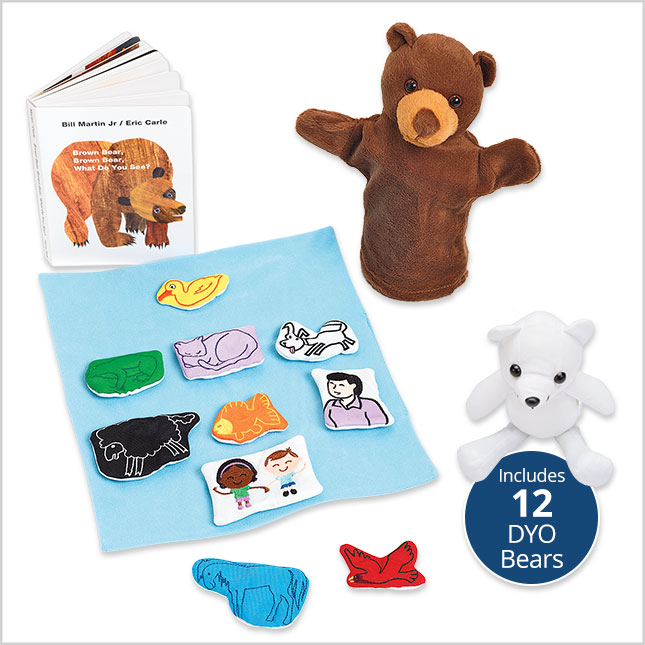 Eric Carle's Brown Bear, Brown Bear What Do You See? This set includes a brown bear hand puppet and 9 story pieces with hook and loop for an engaging story time with board book.