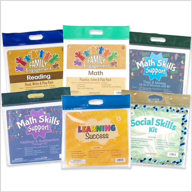 Family Engagement Read, Write & Play Pack for Second Grade is a teacher-developed supplemental curriculum product created to help your child practice and build on important skills such as analyzing text and story writing, descriptive writing, compare and contrast and a fun game teaching students how to analyze and describe characters. Some of the fun and interactive items in this kit include a Stretch-A-Sentence Journal, practice dry erase mats, triple game spinner and task cards, and a literacy puzzle game. The materials include both hands-on repeated practice and single-use reference materials for supporting Second Grade reading skills. The full-color Activity Guide in both English and Spanish, provides a family letter and helpful practices to aid and support your child’s learning experience. The guide explains how to use each item in this Second-Grade readiness kit, activities for taking learning further and a 30-day calendar of additional fun learning activities!