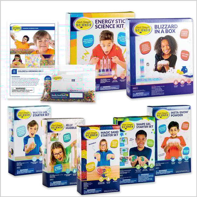 Make Gallons of Fluffy Snow in SecondsThe original fake snow polymer!Snow is a seasonal phenomenon, but it can’t be relocated inside for study and play, and – in some areas of the country – it won’t appear at all. So, when snow (and fun) is on the mind, let the kids devour hours of fun with one of these Steve Spangler Science Insta-Snow Powder Kits – delivering realistic, fluffy snow that can be dried out to reuse countless times. With just the addition of water, the liquid/insta-snow powder mix turns into a solid within seconds—no mixing required. A true wonder and learning asset for a multitude of settings and playtimes.Insta-Snow isn’t just a cool demonstration, educators have found great use in sensory tables for early childhood and chemistry for advanced sciences!No matter what quantity of Insta-Snow you choose, you’ll get all of the materials you need including mixing instructions and the scientific explanation. You’re getting a “WOW” factor with a ton of scientific application. Recommended for children ages 4 and up with adult supervision.What does it teach?Explore the ever-changing science of polymers as students experiment with Instant Snow. Each Insta-Snow product comes with an activity guide with suggestions for science fair projects and fun ways to explore the science of polymers. Within seconds, the liquid/powder mixture turns into a solid and then erupts into a fluffy, white snow-like material (no mixing required). Watch in amazement as it instantly expands up to 100 times its original volume.Amaze Your Friends with Water Gel™Add 1 scoop of Water Gel™ to a cup of water and in seconds! The water will instantly turn into a solid! Turn the cup upside down on your hand and give the cup a few taps to knock the slushy solid into your hand. Poke it, squeeze it, and smash it. Water Gel turned a cup of water into a squishy lump of slush!Make Colorful Snow in SecondsAll you need to do is add a few drops of food coloring into the water!Instruction Cards Included with 9 Experiments!Let it Snow!Snowballs in Your FreezerSnowballs to SnowmanSnow FortSnow ColorsRainbow SnowIce, Ice, BabySlushy ScienceBlizzard TimeRecommended ages 4+.Adult supervision required. Do not ingest.