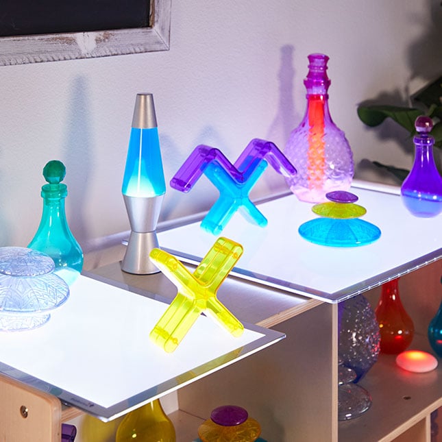 - PERFECT FOR SENSORY ROOMS: See the boulders pastel shades illuminate on a light panel.