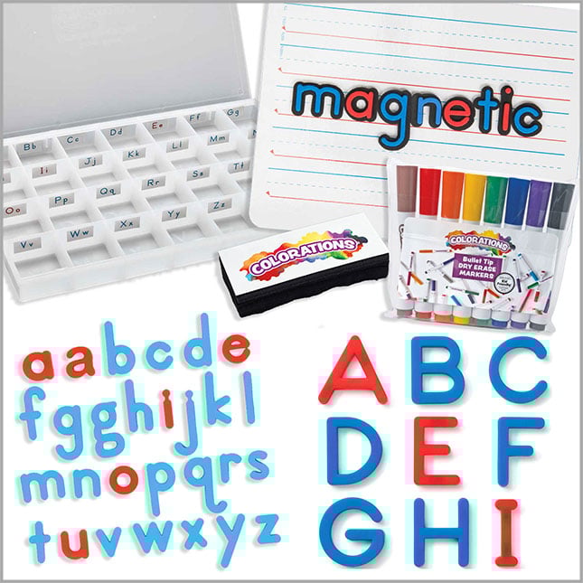 Made of sturdy plastic, these black letters offer maximum contrast on a whiteboard to support focus and concentration. They also prevent students from relying on color-coding to deduce which letter to choose. The plastic case with a tight-fitting lid keeps ...